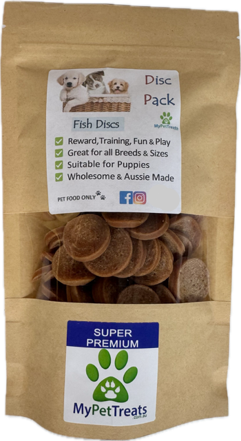 Small single protein treats with 98% fish that have been specifically combined with 2% tapioca...